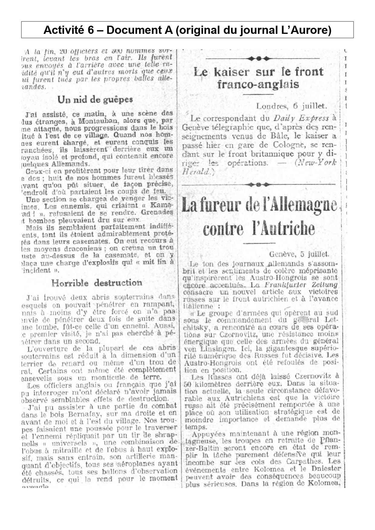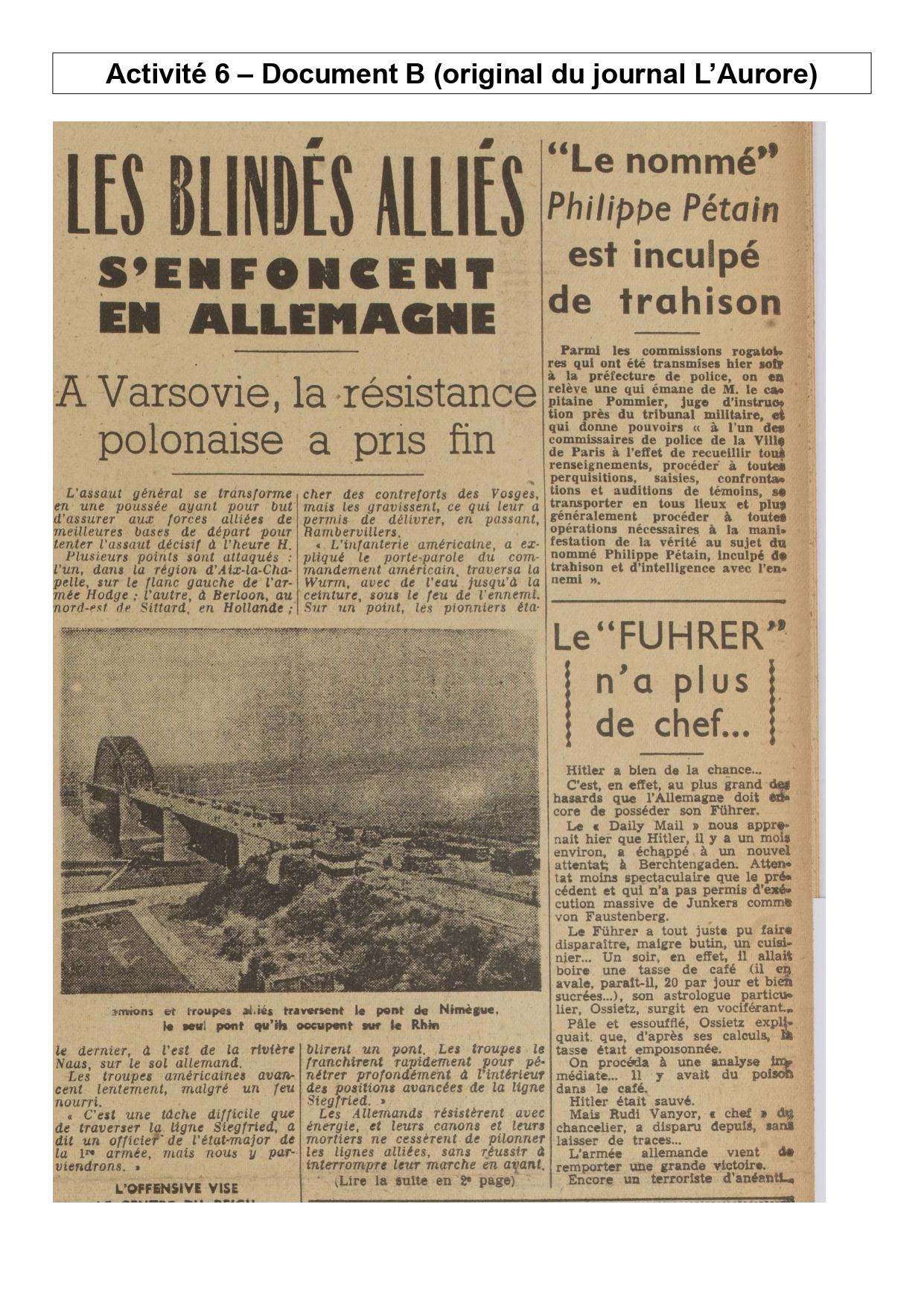 Les deux documents ci-contre sont extraits du journal L'Aurore.